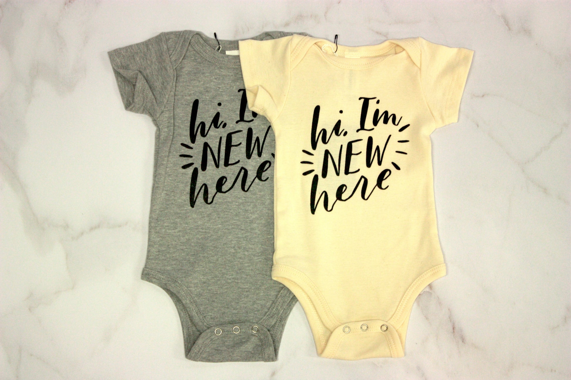 - Gladfolk "Hi, I'm New Here" Onesie, color of your choice