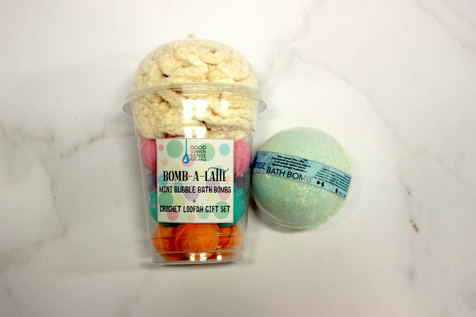 - a Good Common Sense Bath Bomb, single or many mini's with a crocheted loofah